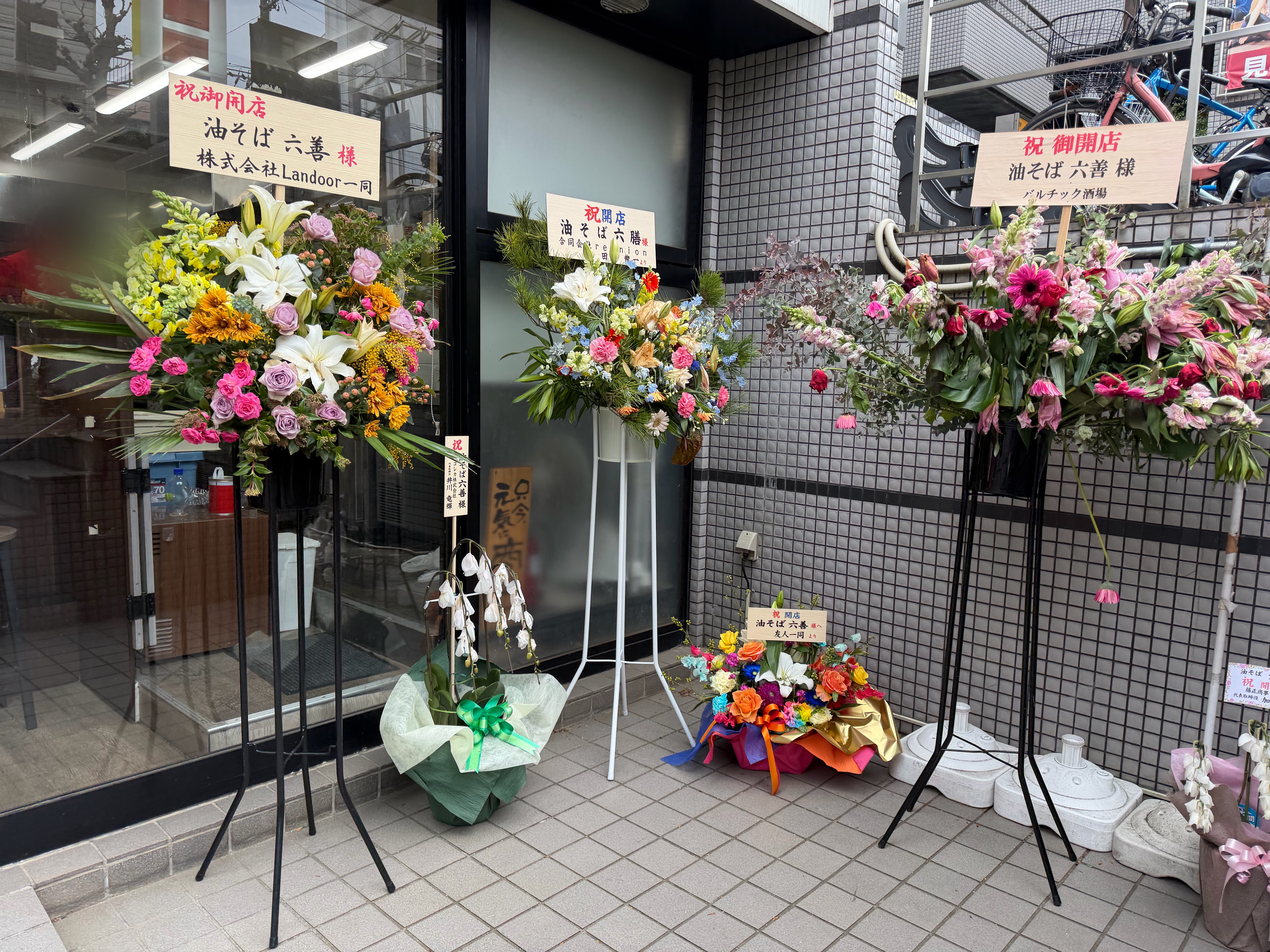 オープン期間、店の前には祝いの花が届けられていた。扉を開けていざ店内へ!