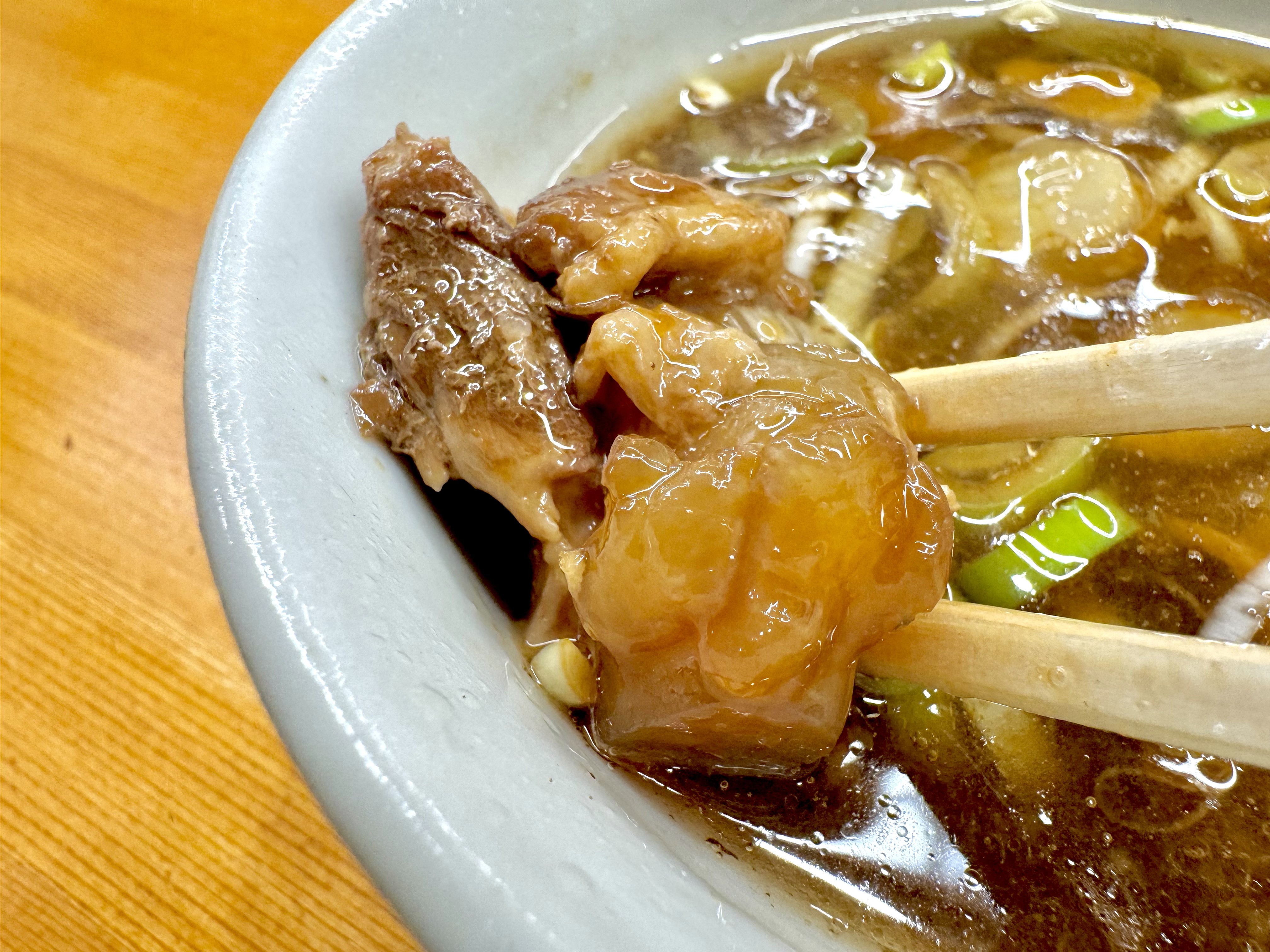 鶏チャーシューはしっとり柔らかく、まさお(ウズラの味玉)は優しい美味しさ、つけ汁にはなんとソーキの肉が投入されています。特にソーキは柔らかくジューシーでトロトロ。つけ汁が香ばしく感じたのはソーキ由来なのか?いや違うかww