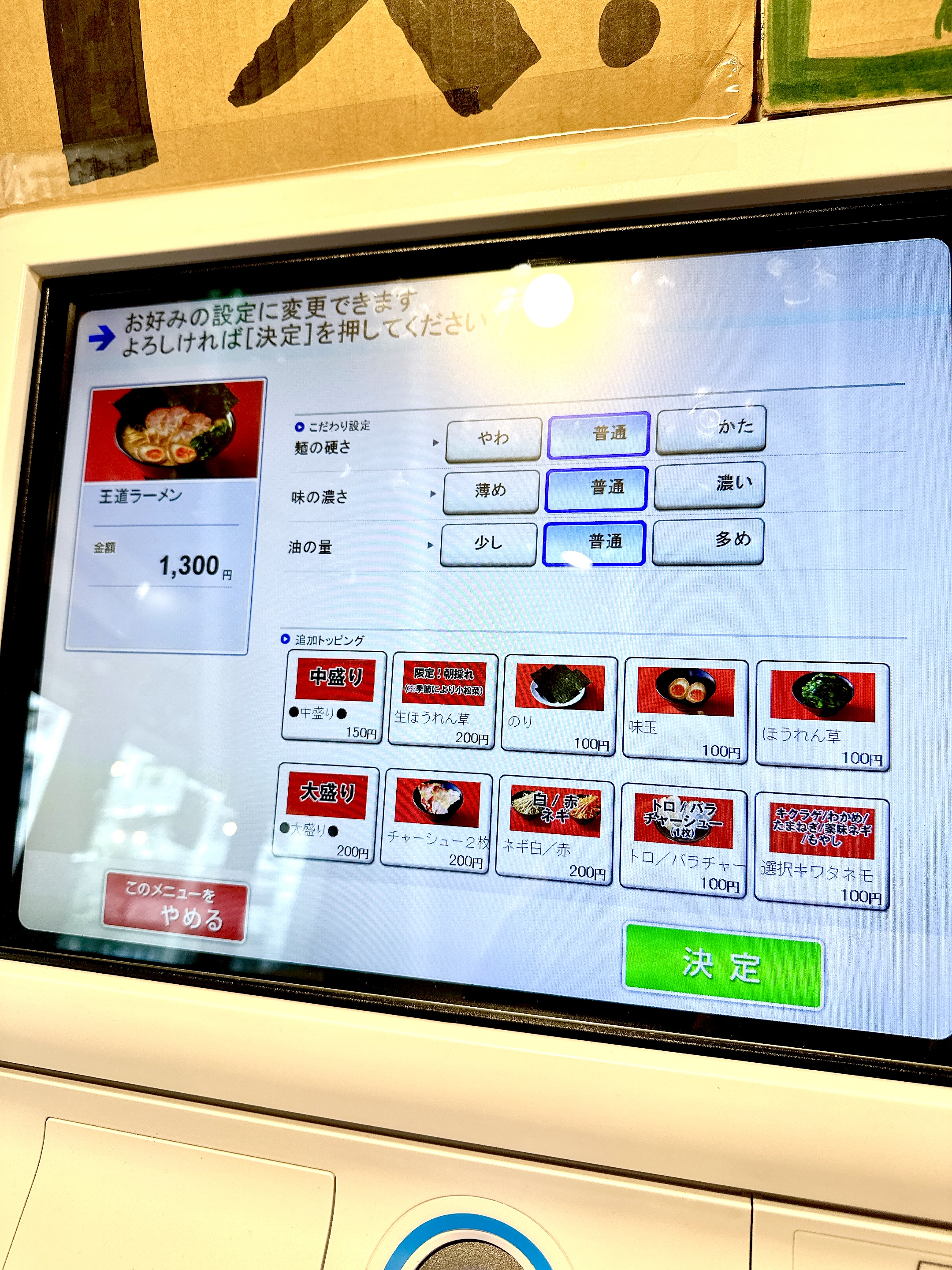 家系恒例のお好みコールですが、カズ家さんでは券売機で完結!麺の硬さ・味の濃さ・油の量